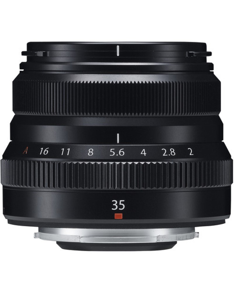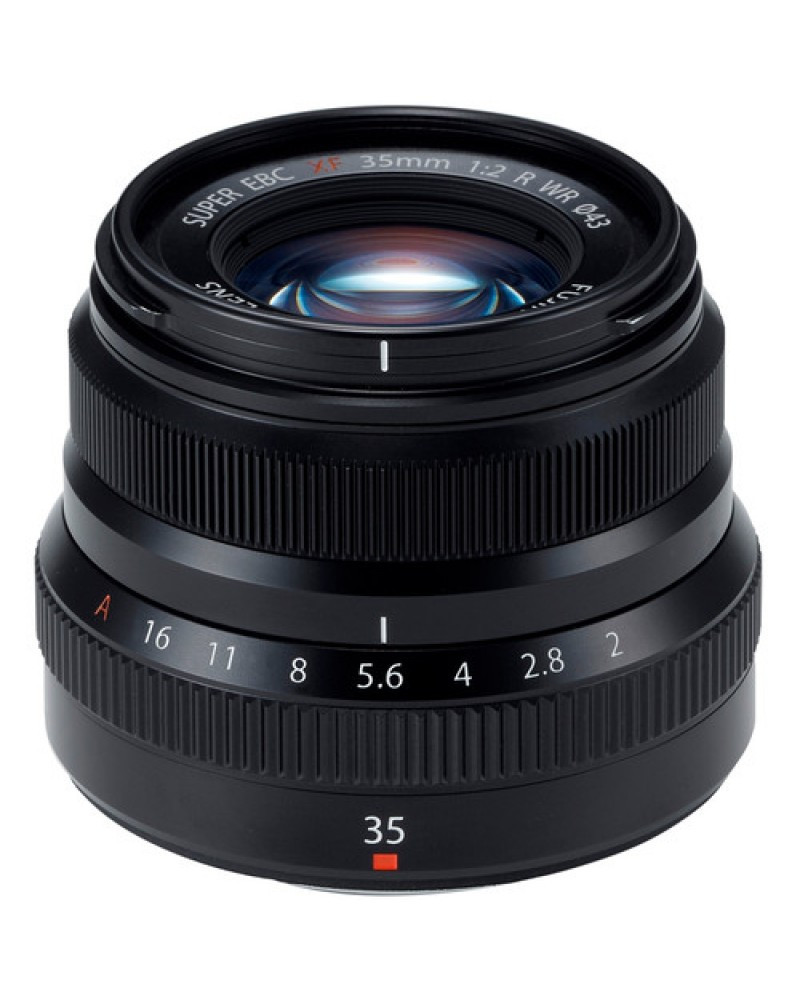 Achieving the perfect balance between size and performance, the black XF 35mm f/2 R WR from FUJIFILM is an elegant normal-length prime featuring a compact profile and apt image quality. Two aspherical elements are used in the optical design to reduce distortion and spherical aberrations in order to produce greater sharpness and accurate rendering. A Super EBC coating is also used to control flare and ghosting for improved contrast and color fidelity when working in bright and backlit conditions. Complementing the optics is a stepping motor, along with an internal focusing design, which provides quick and especially quiet focusing performance. Additionally, the lens is weather-sealed to suit working in inclement conditions.