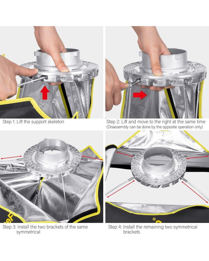 The Rectangular Softbox ES710 used a quick release system, can quickly and simply complete the installation and folding, which is easy to carry.