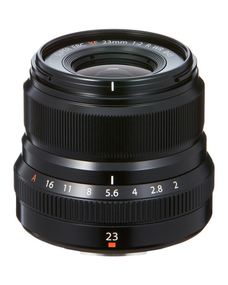 Designed as a compact, walk-around prime, the black XF 23mm f/2 R WR from FUJIFILM is a versatile 35mm-equivalent lens characterized by its f/2 maximum aperture that strikes and ideal balance between portability and speed. The optical design features two aspherical elements to reduce distortion and spherical aberrations in order to produce greater sharpness and accurate rendering. A Super EBC coating is also used to control flare and ghosting for improved contrast and color fidelity when working in bright and backlit conditions. Complementing the optics is a stepping motor, along with an internal focusing design, which provides quick and especially quiet focusing performance. Additionally, the lens is weather-sealed to suit working in inclement conditions.