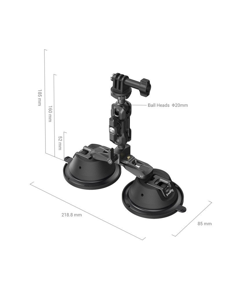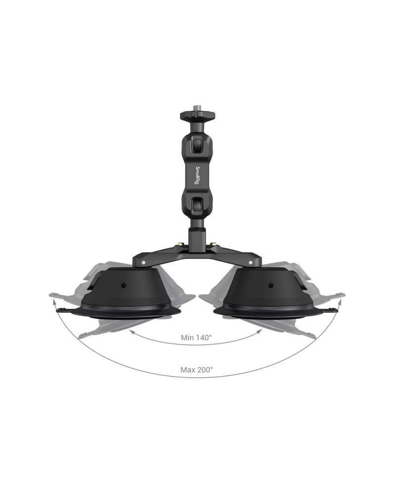 SmallRig Portable Dual Suction Cup Camera Mount SC-2K 3566 represents a lightweight solution to action camera and mobile phone photography with using a car. The modular design, including a dual suction cups, a universal magic arm, and a action camera mount, supports most lightweight cameras (e.g. Sony ZV-1, Canon G7X series, etc.), action cameras, and mobile phones on the market. The dual suction cup camera mount is designed for quick disassembly with a single push of a button; In addition, the exclusive patented double-layer suction cup design enables secure, long-lasting, and stable support filming; there is a 20° adjustable space where the suction cups are attached to each other, allowing them to be attached to curved surfaces. The universal magic arm is attached to the dual suction cups via a NATO rail at one end and quickly mounted onto other NATO rail accessories and the 1/4"-20 screw at the other end connects cameras, mobile phones, action cameras, and other devices. The action camera attachment includes a universal GoPro mount and locking screw that support the magic arm for action cameras. Besides, a special suction cup dust cover is included to prevent dust, thus prolonging its service life.
