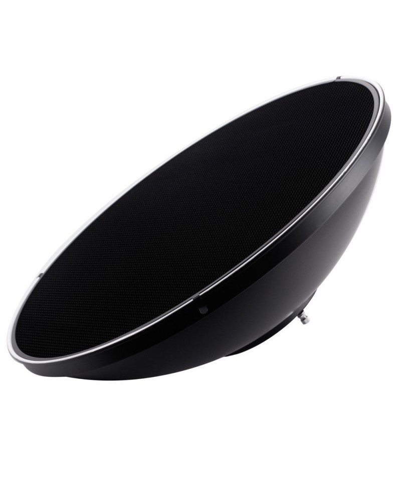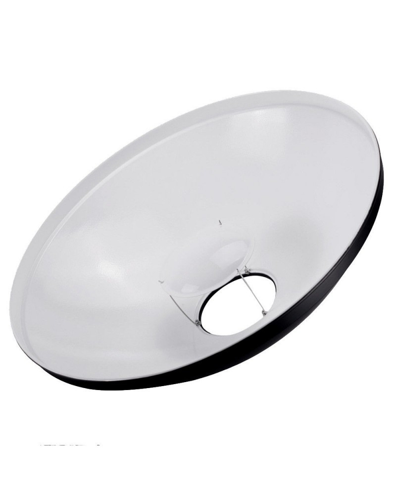 The 55cm white interior beauty dish is a high-quality modifier which provides a soft, gentle light source from your lights with a little more contrast compared to a softbox. The soft yet contrasting light is perfect for accentuating facial features and helps to pull each single detail available from your subject, all whilst giving a unique catch light in the eyes of your subject. With many different fittings available, the interchangeable dish simply attaches to the front of your flash, strobe or light. This is the ideal modifier to provide a unique, high drama look to your photos which make it great for shooting beauty, makeup, fashion or portrait still life photography.