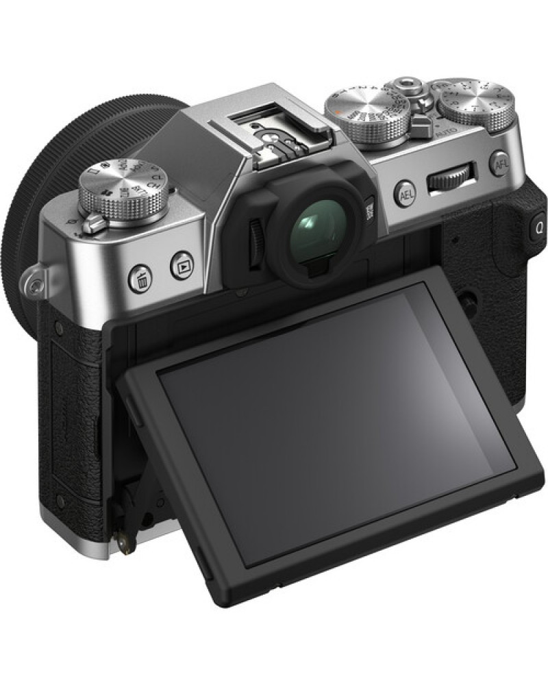 Sharing a familiar aesthetic of FUJIFILM X-series cameras, the X-T30 II sports a silver finish and classically inspired looks, has prominent physical controls, and has a high-resolution 2.36m-dot OLED electronic viewfinder. The rear 3.0" 1.62m-dot tilting touchscreen LCD can also be used for live view shooting and larger image playback. Additionally, the X-T30 II also sports built-in Bluetooth for wireless sharing and remote control.