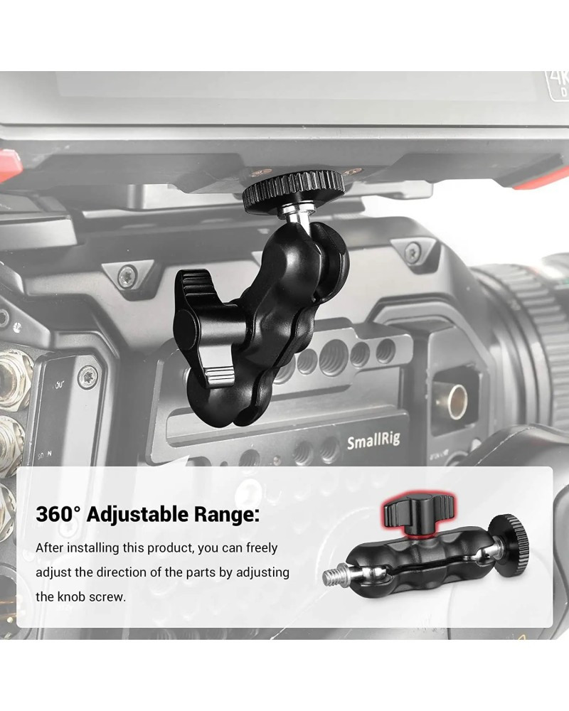 SmallRig Universal Magic Arm with Small Ballhead is equipped with 1/4” screws at both ends. It could attach camera cage, top plate and Top Handle 1955/1984 on the one end, while attach monitor or video light on the other end. It features a wingnut in the middle to adjust the angles and positions of monitor or video light or other accessories.