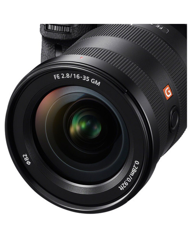 FE 16-35mm f/2.8 GM Lens from Sony is a wide-angle zoom designed for full-frame E-mount mirrorless cameras. Distinguished by its constant f/2.8 maximum aperture, this lens offers consistent performance throughout the zoom range and benefits working in low-light conditions. The optical design incorporates two extra-low dispersion elements to reduce chromatic aberrations along with two XA elements and three aspherical elements, which significantly controls spherical aberrations for a high degree of image sharpness and clarity. Additionally, a Nano AR coating has been applied to limit ghosting and lens flare for increased contrast and color fidelity when working in strong lighting conditions.