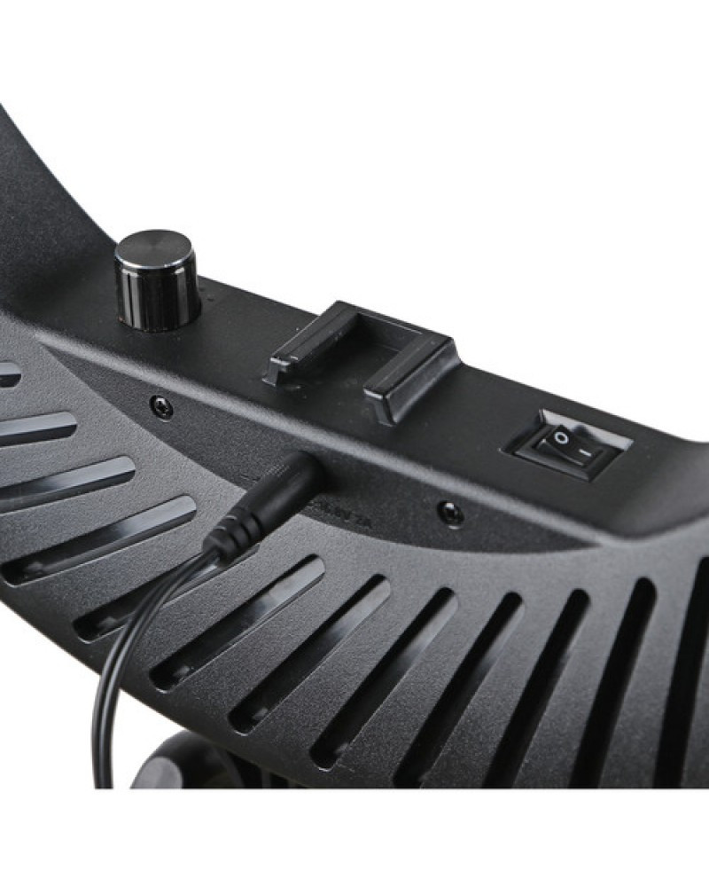 The Black LR180 Daylight Ringlight from Godox features a distinctive-shaped light fixture with a color temperature of 5600K that's ideal for shooting outdoors or in situations with large windows. The light is mountable to an optional grip head or stand, allowing you to shoot through it for a silky smooth near-shadowless effect that is flattering to your talent's complexion. Ideal for selfies, a smartphone holder is included to make photos a snap. Another bonus is the unique circular shape of the light that is reflected in your subject's eyes. You can make light intensity adjustments via a simple knob on the fixture. The LR180 runs on AC power via its included adapter.