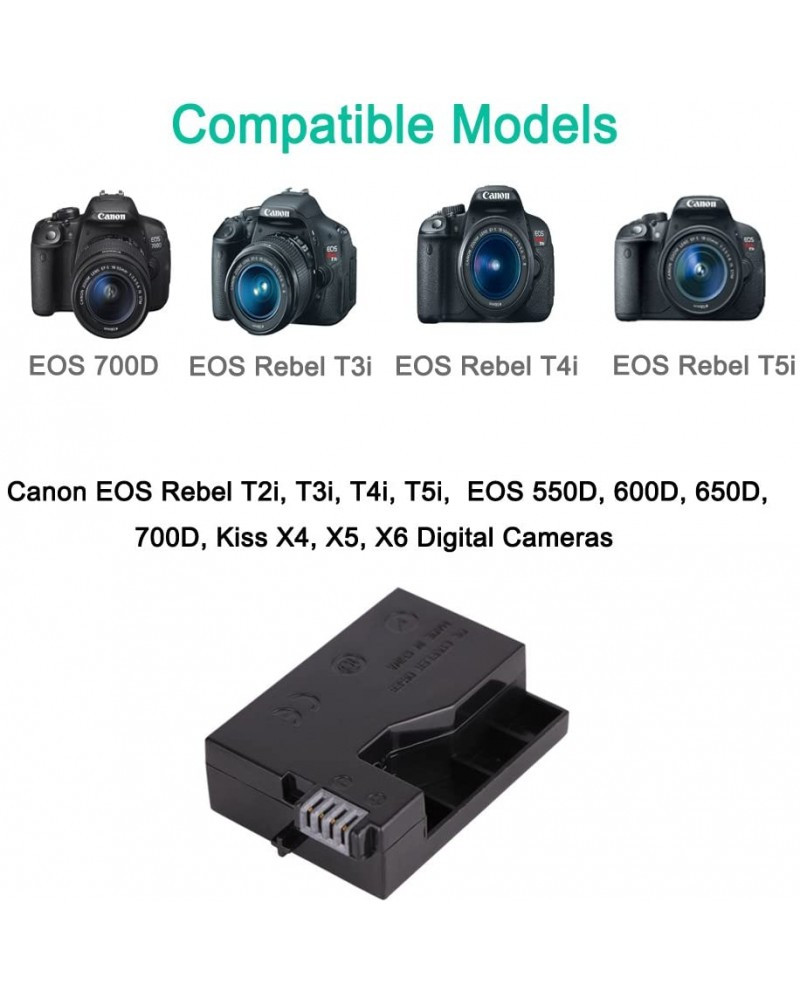1x DR-E8 DC Coupler (LP-E8 dummy battery power connector)