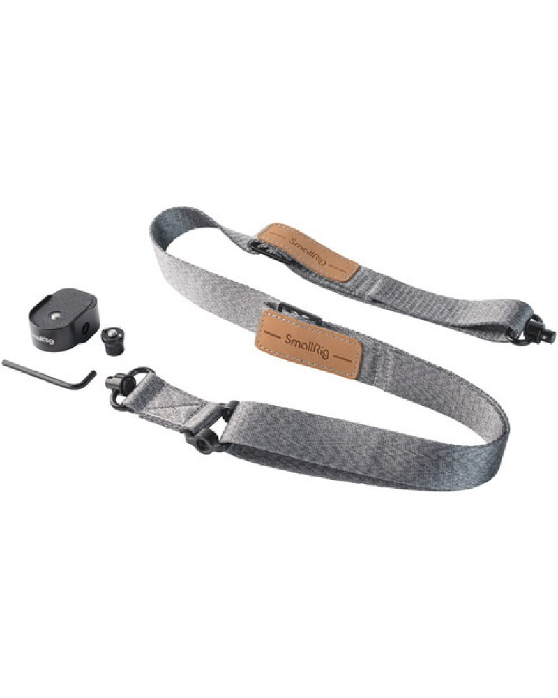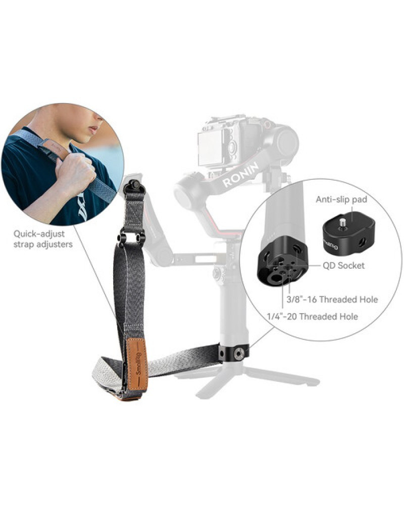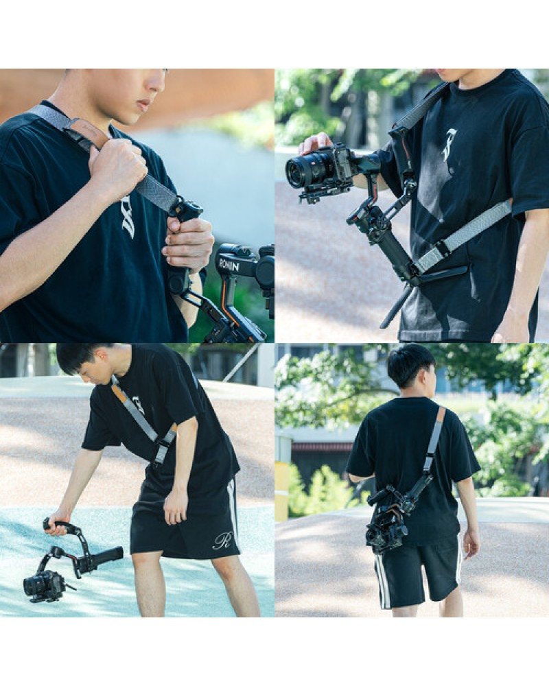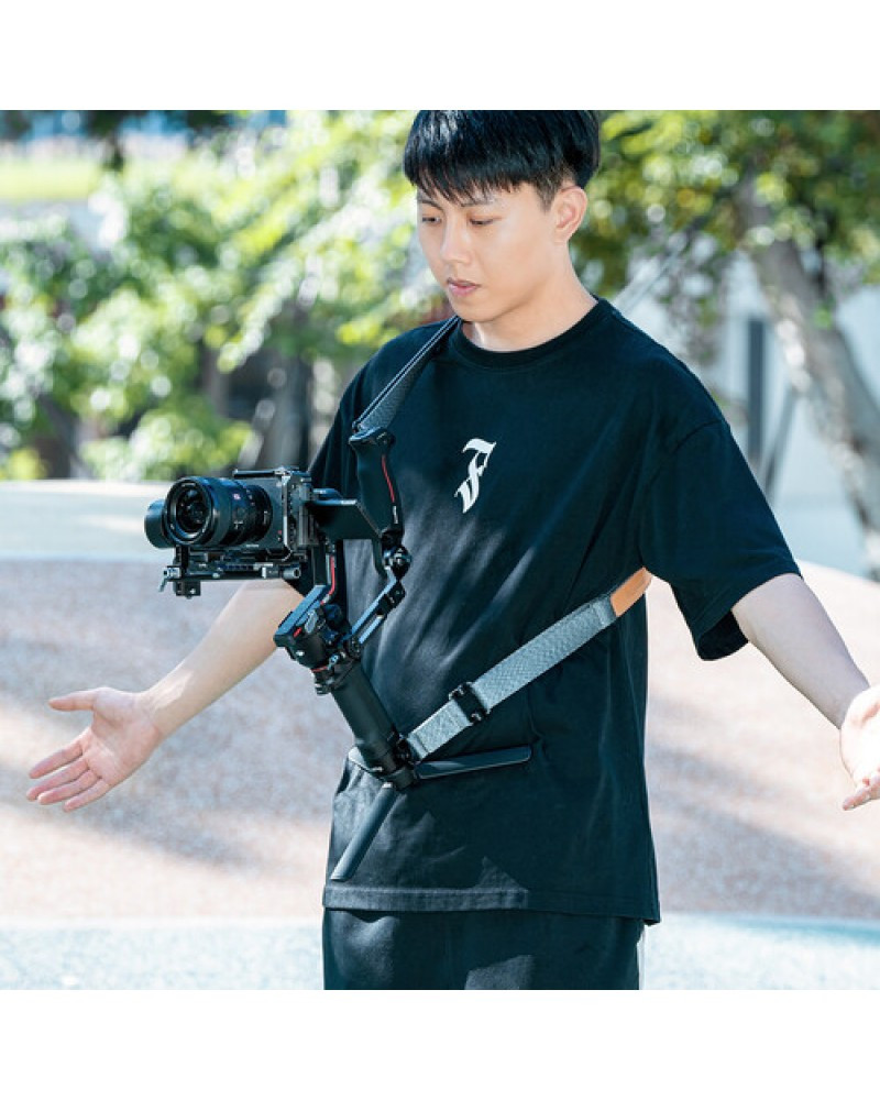 Take the load off your arms when using the DJI RS 3, RS 3 Pro, or RS 2 handheld gimbal stabilizer with this Weight-Reducing Shoulder Strap from SmallRig. The polyester strap is adjustable from 36 to 59" and can be worn around your neck, over your shoulder, or cross-body. The strap features two QD (Quick Detach) mounts that rotate and connect to the central baseplate, and the baseplate is required to connect to separately available SmallRig or DJI sling handgrips or other grips with 1/4"-20 threads.