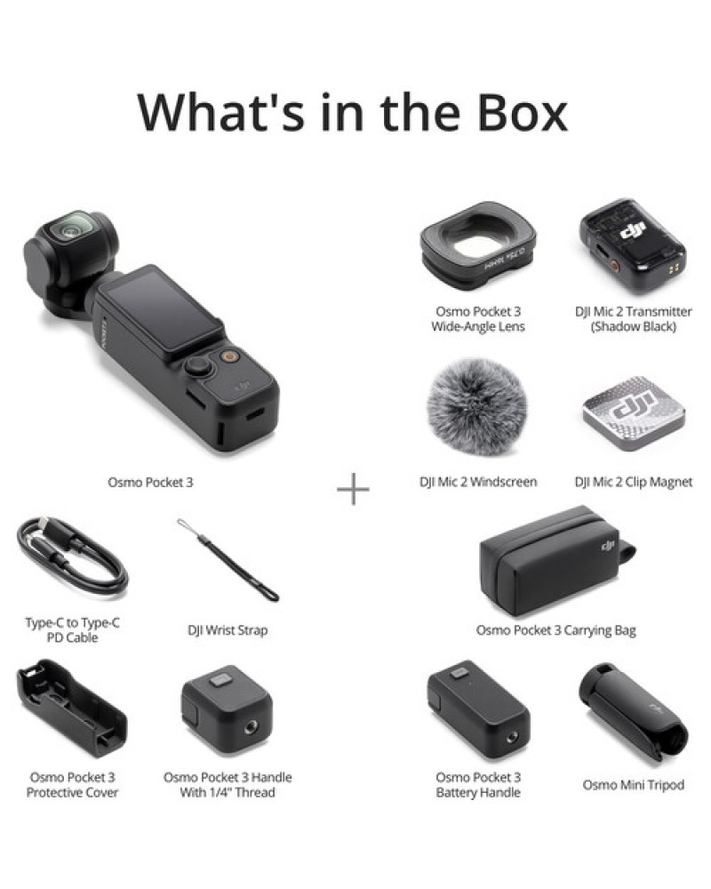 Capture steady and smooth motion videos with the DJI Osmo Pocket 3. Boasting a wide range of upgrades over its predecessor, the Osmo Pocket 3 features a 1" CMOS sensor that ensures high-quality, low-noise footage acquisition even in high-contrast environments and with resolutions up to UHD 4K120.Three built-in microphones capture stereophonic sound while reducing ambient noise, and new software enhancements bring ActiveTrack 6.0 to your fingertips for precise subject tracking in both photo and video modes with smart horizontal and vertical shooting modes, as well as D-Log M and 10-bit support.