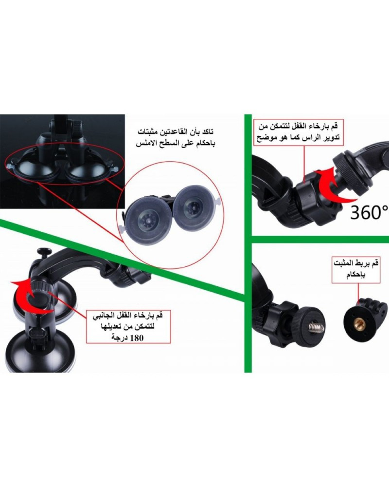 • Essential to use double suction cup for shooting in the car. Easily fasten your gopro to the smooth surfaces, like car windshield, plate glass door.