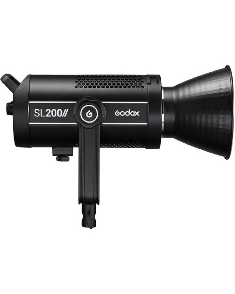 The Godox SL200W II LED Video Light is a daylight-balanced 200W LED monolite-style light source suitable for broadcasting, cinematography, online streaming, and other video applications. Dimming settings range from 0% to full power and can be adjusted by its wireless remote. The light comes with a reflector.