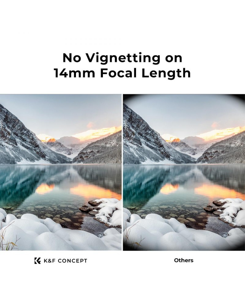 K&F Concept HD uv filter frame only 3.3mm with double side polishing technology no vignetting and the images still clarity even on telephotos lens.