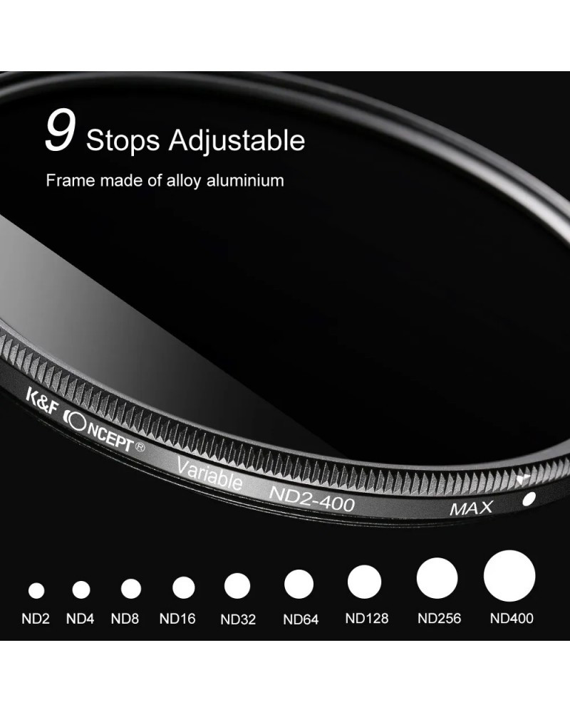 Neutral density can be adjusted from ND2 to ND400.Reduces the amount