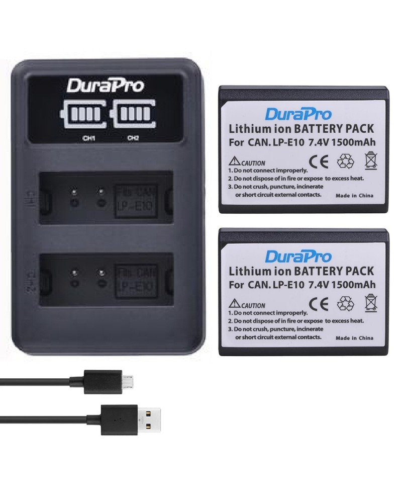 DuraPro 2pc LP-E10 LP E10 LPE10 Camera Li-ion Battery + LCD USB Charger For Canon 1100D 1200D Kiss X50 X70 Rebel T3 T5