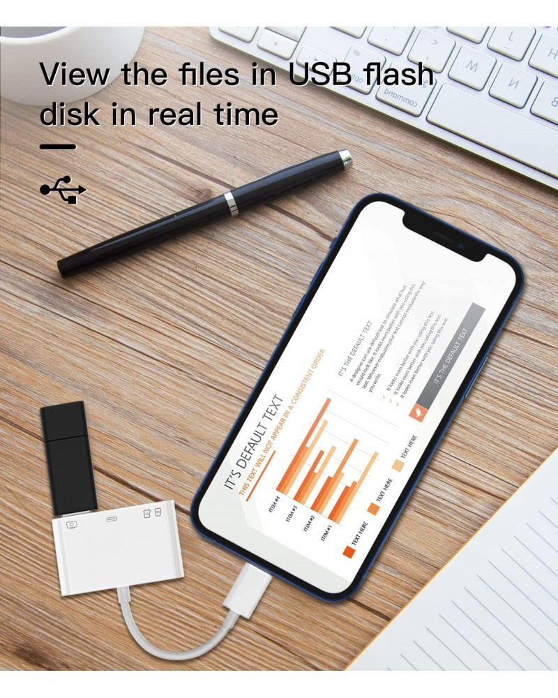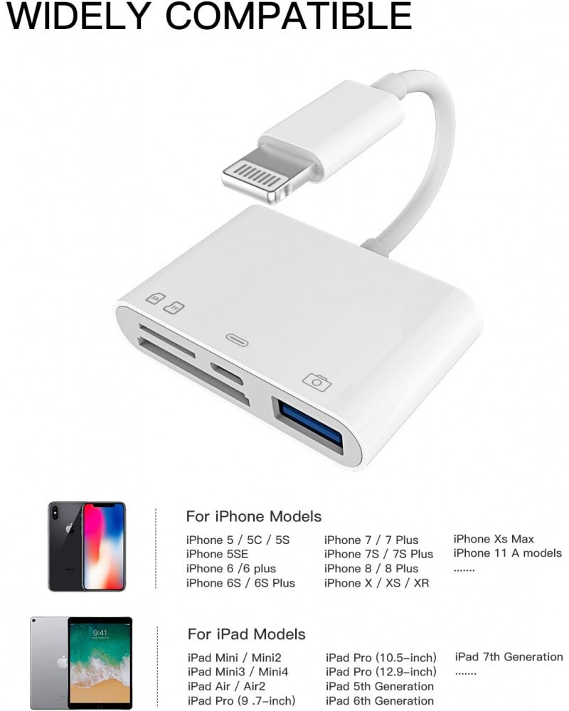 8 Pin to USB-A Connection Kit will extend the iPhone, iPad to more functions, such as camera, card reader, USB flash driver, Mouse, Keyboard, Hubs, etc.