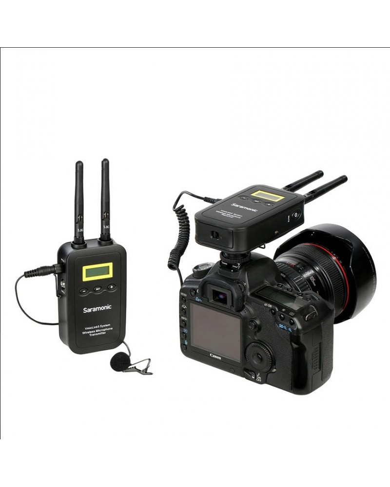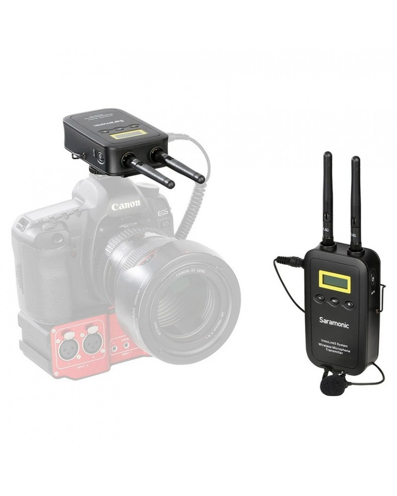 The Saramonic VmicLink5 RX+TX is a portable, camera-mountable wireless system that makes using a clip-on lavalier microphone as easy as possible. It’s perfect for DSLR, video cameras or portable audio recorders for capturing interviews, event videography, film dialog, field recording, broadcast TV and news gathering.