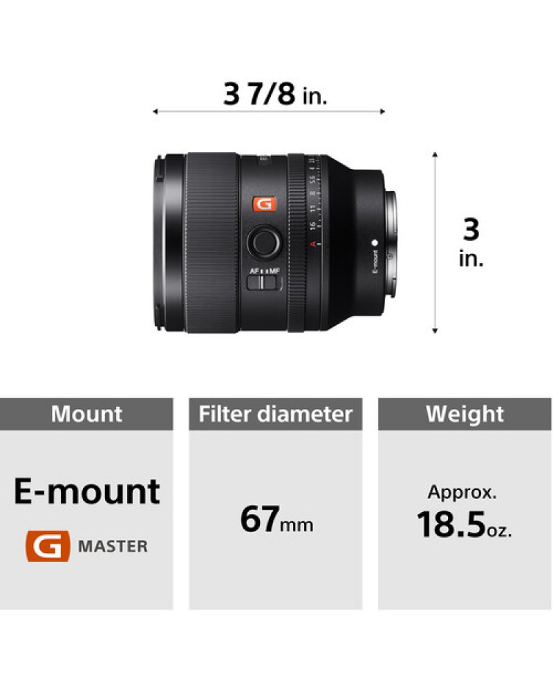As part of Sony's esteemed G Master series, this lens is designed to achieve a balance of impressive resolution and sharpness along with distinctive and pleasing bokeh.