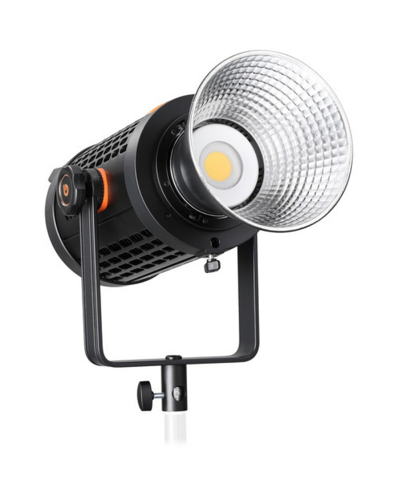 The Godox UL150 Silent LED Video Light is a daylight-balanced 150W LED monolite-style light source that features a fanless cooling design for silent operation. By eliminating unwanted noise during use, this LED light can benefit broadcasting, cinematography, online streaming, and other video applications with sound. The UL150 Silent LED Video Light is operated from an external controller, further helping to keep it compact and lightweight while its integrated umbrella mount and reflector mount make it compatible with the included reflector and a wide variety of light modifiers.