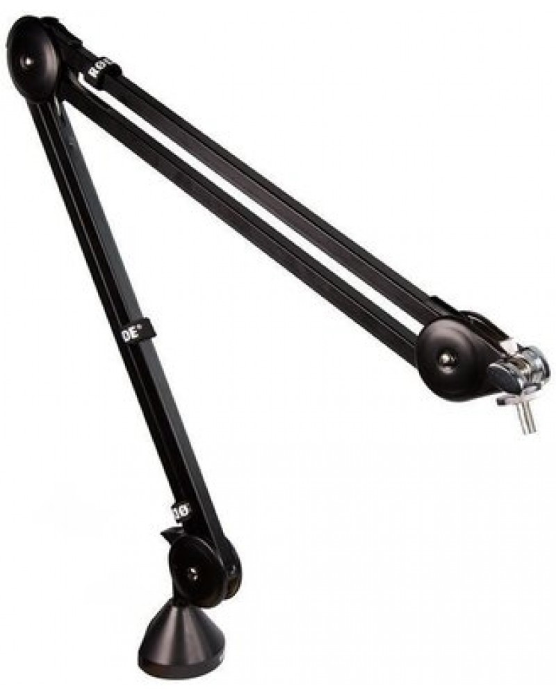 The Rode PSA1 Studio Boom Arm is a two-section, spring-loaded broadcast microphone arm designed for quiet and flexible microphone positioning in broadcast radio studios, voiceover studios, etc. The PSA1 rotates 360 degrees and features a maximum reach of 32" (820mm) horizontally.
