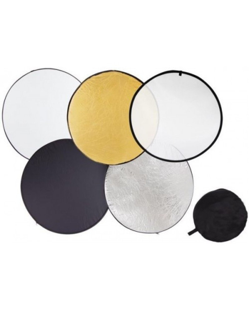 This 32" 5 in 1 Reflector with five different reflective surfaces can be used to fill in, reflect, diffuse, absorb or soften light.