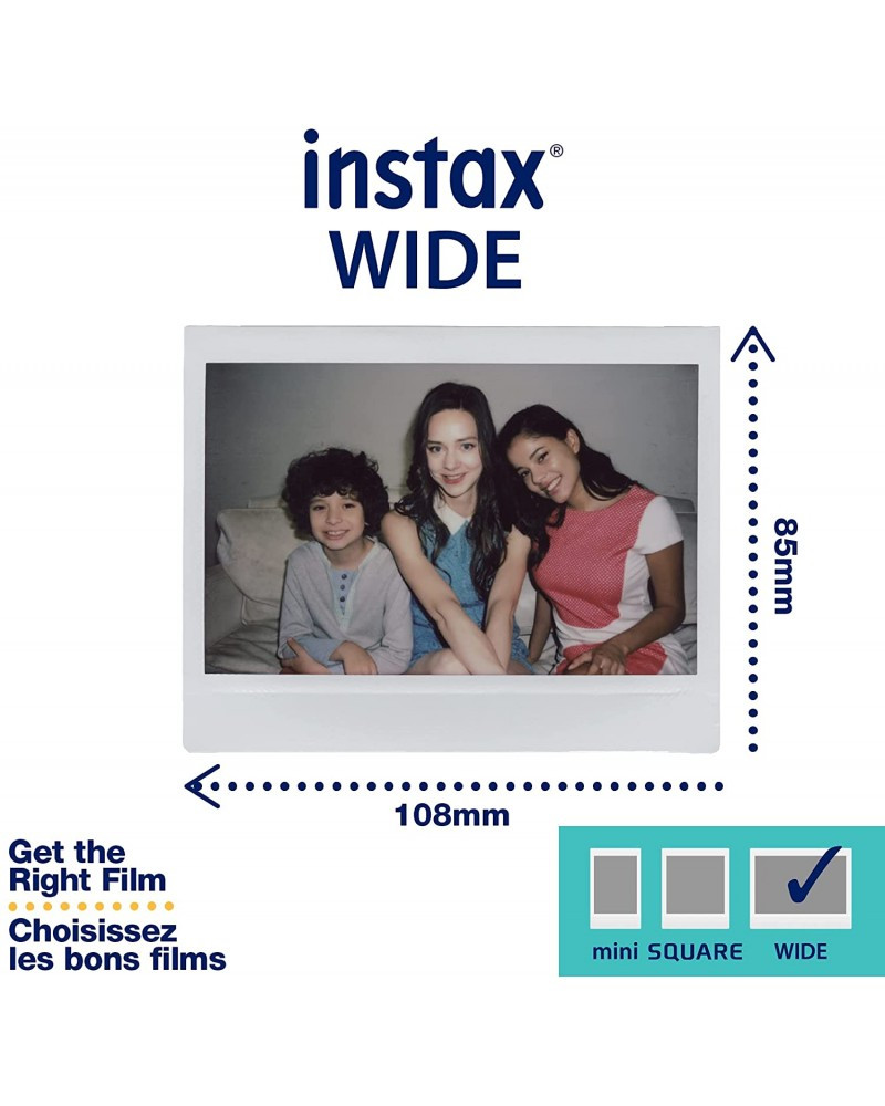 The single pack of FUJIFILM INSTAX Wide Instant Film contains 10 total sheets of instant color film that is compatible for use with FUJIFILM INSTAX Wide 300, 200, and 210 cameras. This film features vivid color reproduction with natural skin tones when used under daylight (5500K) or electronic flash lighting conditions. A refined grain structure provides high image