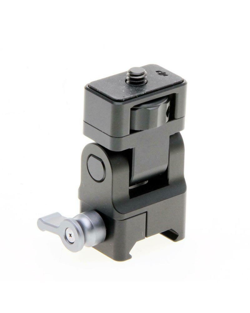 The Ronin-S/SC Adjustable Monitor Mount attaches to Ronin-S or Ronin-SC through the NATO rail on the Ronin-S/Ronin-SC Dual Handles, allowing users to mount a monitor at an adjustable angle for various shooting scenarios. Other accessories such as the Ronin-S/Ronin-SC Phone Holder or equipment with 1/4'' screw holes can also be mounted to the Ronin-S or Ronin-SC through this monitor mount.
