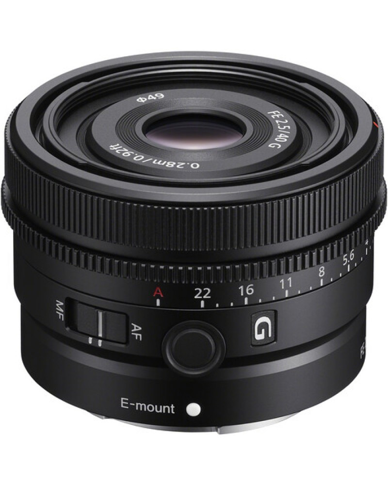 A comfortable focal length with an especially portable design, the Sony FE 40mm f/2.5 G is a versatile prime; an ideal single focal length option for a broad variety of situations. This lens's smart build and sophisticated G Series optics mix with intuitive handling and the sleek form factor to make it a go-to option for anything from street to landscape to travel applications.