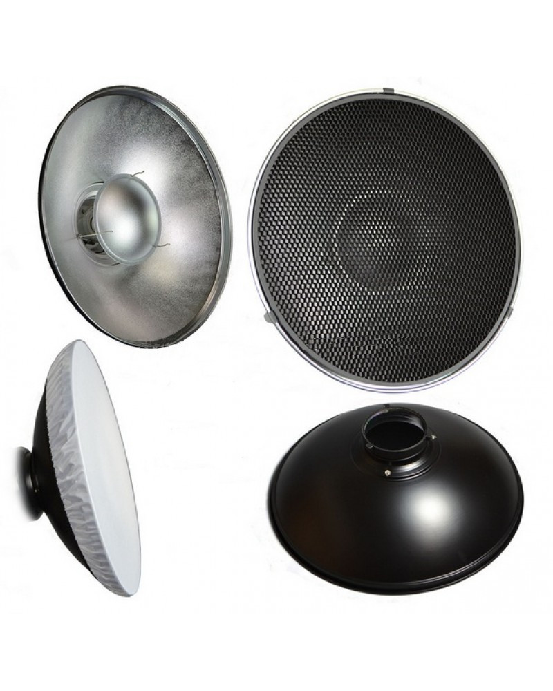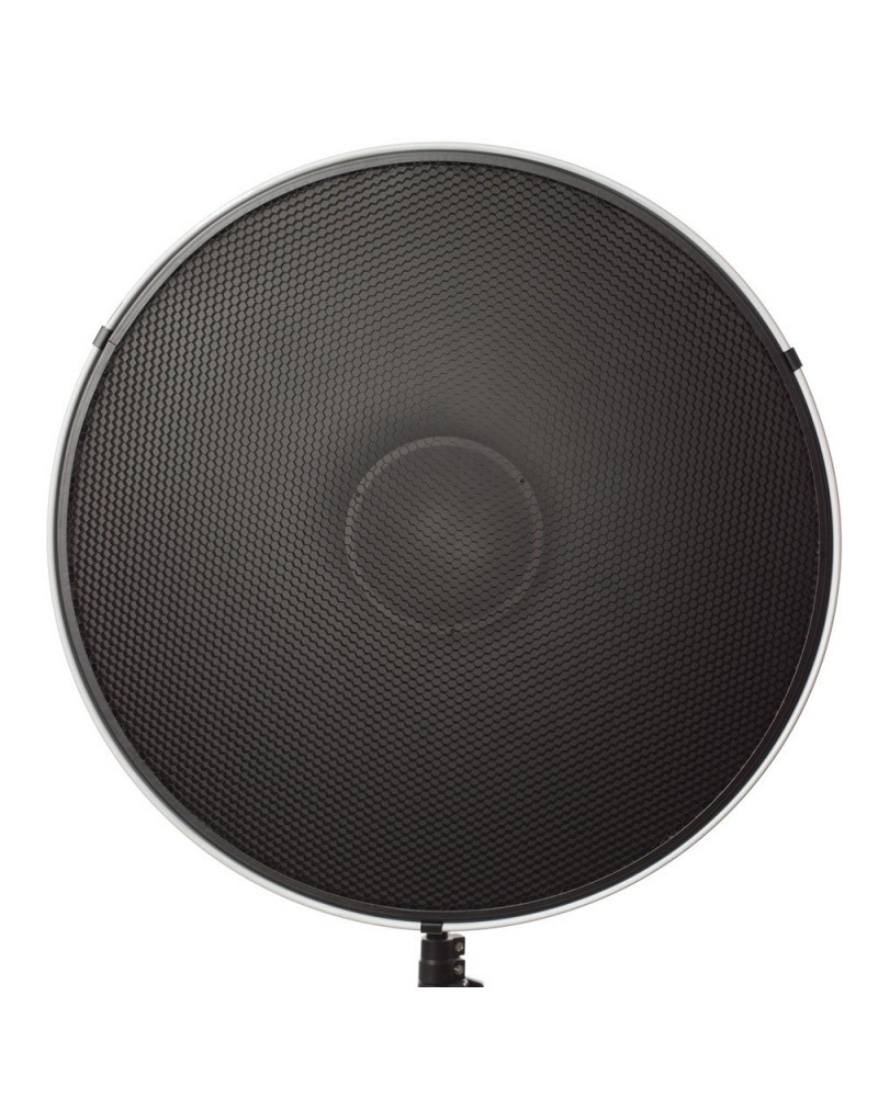 This silver beauty dish provides a wonderfully versatile lighting option, the beauty dish is great for fashion and beauty but the included diffuser cap transforms the dish into a round softbox and the honeycomb allows the photographer to take greater control over the light spill.