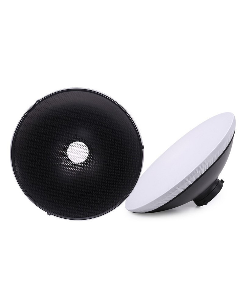 The 28" / 70cm Beauty Dish for Bowen Mount is a light modifier famous for striking portraiture and fashion images. The unique diffusion properties are achieved using a double parabolic reflector system. The final effect has qualities that cross between that of a direct flash and a softbox, giving the image a wrap around look - like a softbox, but with more contrast and a more dramatic directed beam.