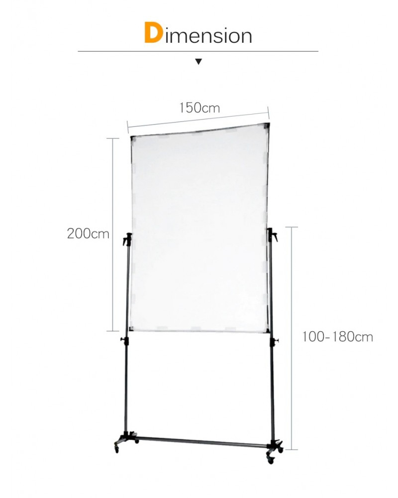 Pro Studio Solutions 150x200cm Sun Scrim system consists of a collapsible aluminium frame that can be easily assembled in moments, it is a lightweight and easily assembled light modifier ideal for location photography and video recording. A couple of minutes of easy setup gets you a very large patch of bright open shade with manageable contrast, instead of glaring deep-shadowed sunlight broiling your subject. The frames is made of lightweight industrial aluminum so the system can be quickly disassembled and it is so light that you can take it anywhere. The 2-stop diffusion screen allows you to tame the glaring sun and reduce contrast, the included reflector panels have a silver side which is great for reflecting strong contrast light, and a white side for reflecting a softer diffused light; allowing you to take full advantage of any kind of light, hard or soft, natural or artificial. The handle allows you to hold the sun scrim aloft to shape and diffuse the glare of the overhead sun, the mounting brackets allow the scrim to be attached for stand mounting.