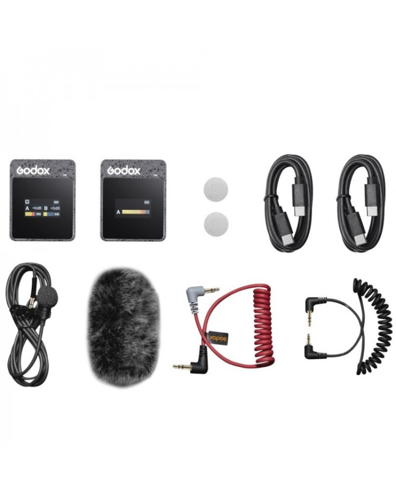 With included 3.5mm TRS-TRS and TRS-TRRS cables, the system is compatible with multiple devices such as smartphones, cameras, computers, tablets, and recorders.