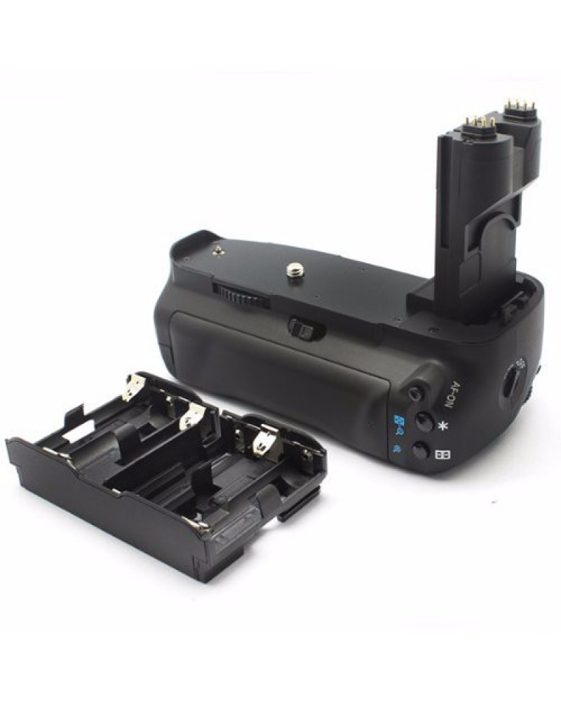 MeiKe MK-7D/BG-E7 is a battery grip that can hold two Battery Packs LP-E6 or six size-AA/LR6 batteries.