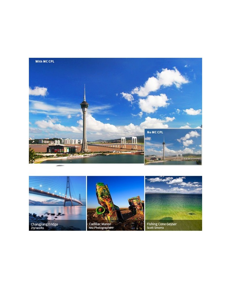 The CPL filter or circular polarizer allows the passage of light with a specific polarization and blocks others. Among its frequent uses is reducing the reflection effect in glass or similar surfaces, or also allowing photography in the direction of the water, eliminating the reflection and being able to capture what is underwater.