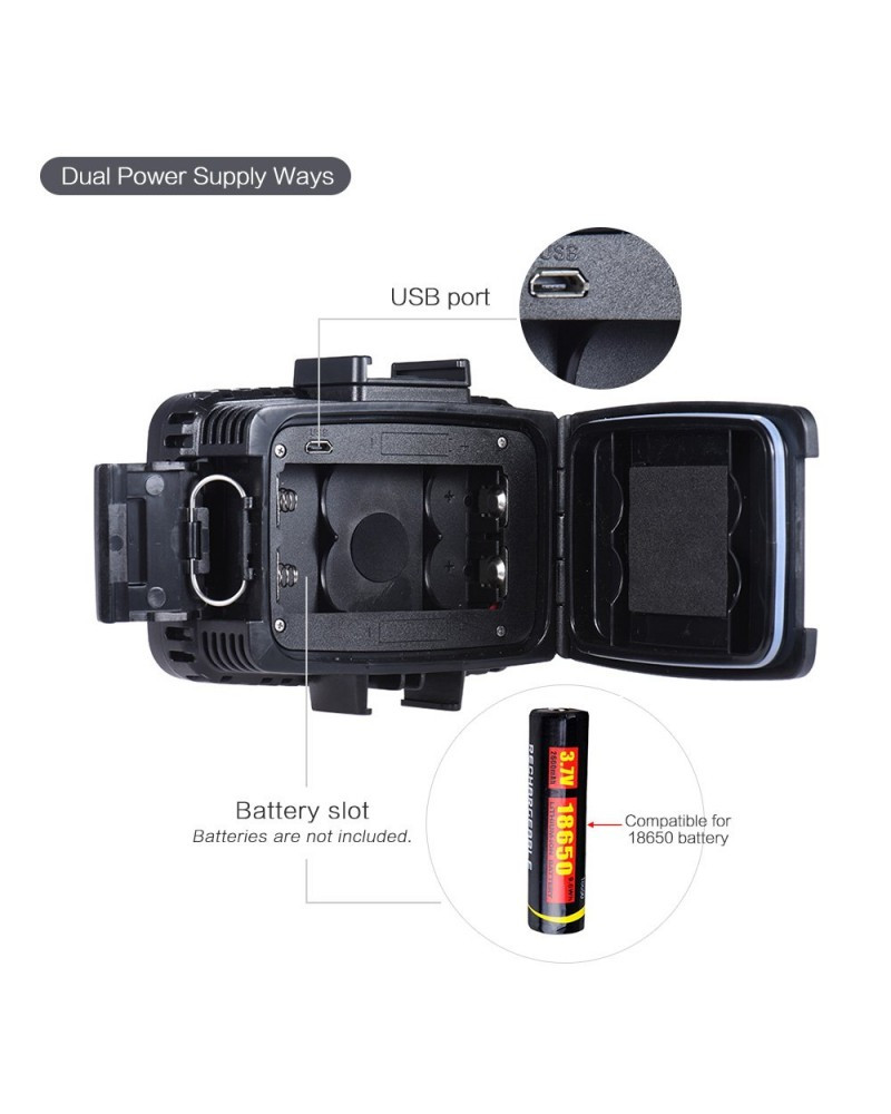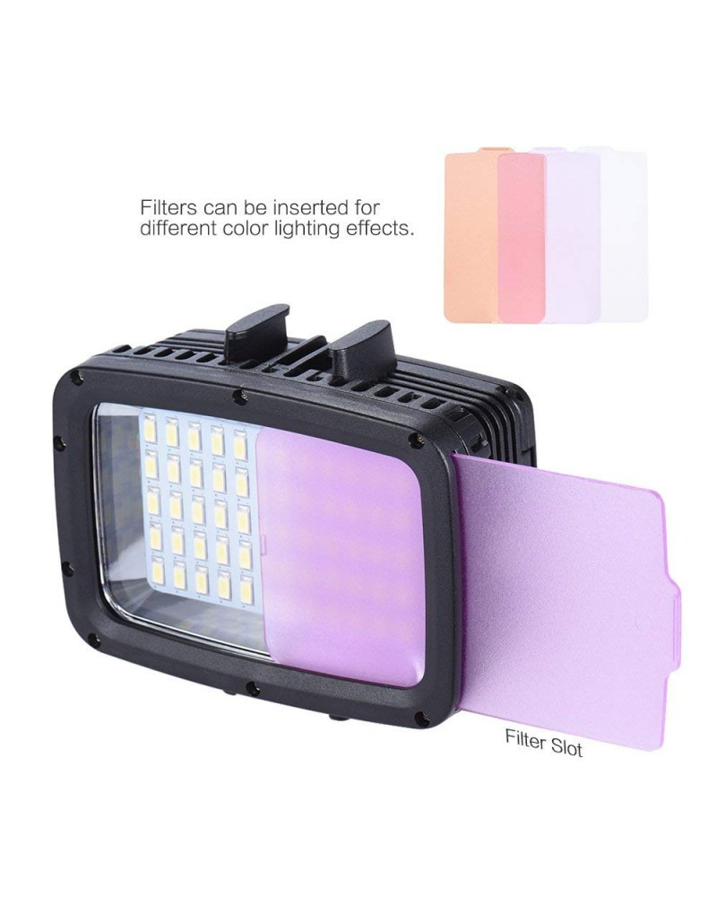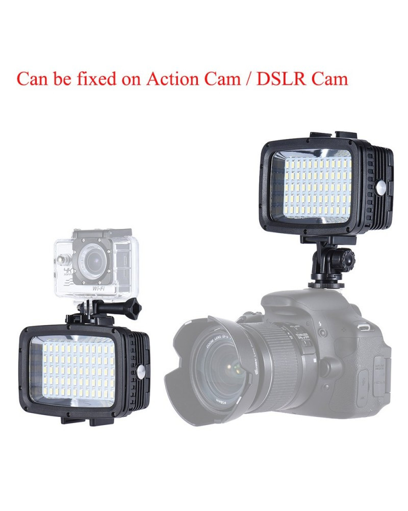 This mini size LED video light is designed for action camera and for DSLR camera, such as for GoPro Hero Xiaomi Yi SJCAM and for Canon Nikon Sony DSLR camera. Waterproof 40m, it can be used for underwater photography. Max. 1800LM, 3 brightness modes, with color filter base, provide different lighting effects for special shootings.