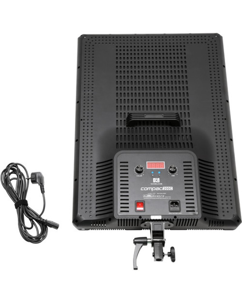 Dimming from 100 to 0% is conveniently done on the back-panel LCD display with negligible color shift. The low electrical draw of just 200W means a timely return on your investment. The Compac200C can be used worldwide thanks to its included 100-240 VAC power adapter. Supplied with a standard 5/8" receiver, the Compac200C can be mounted directly on any standard light stand.