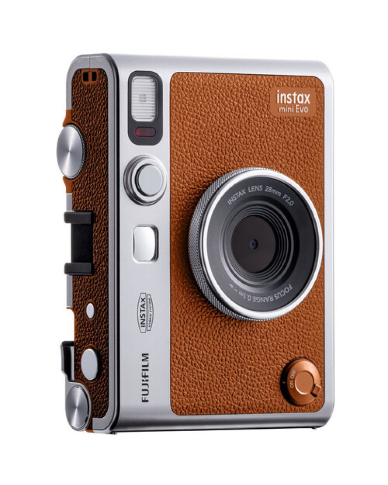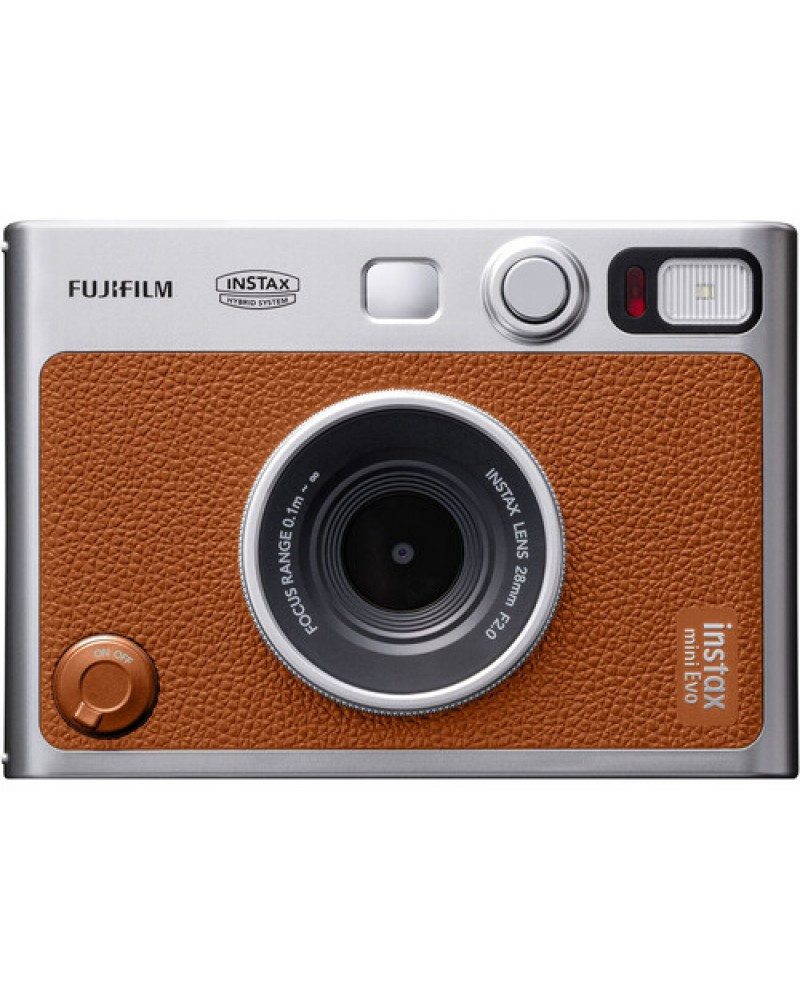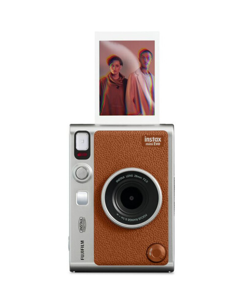 Share life's beautiful moments with the brown INSTAX MINI EVO from FUJIFILM. This innovative hybrid instant camera features 10 lens effect options and 10 film effect options, giving you up to 100 different ways to instantly create your own unique 2 x 3" photographs. You can experiment with vivid colors, add softness to the focus, adjust the exposure, alter the white balance, and even select a macro mode when the situation calls for a close-up.