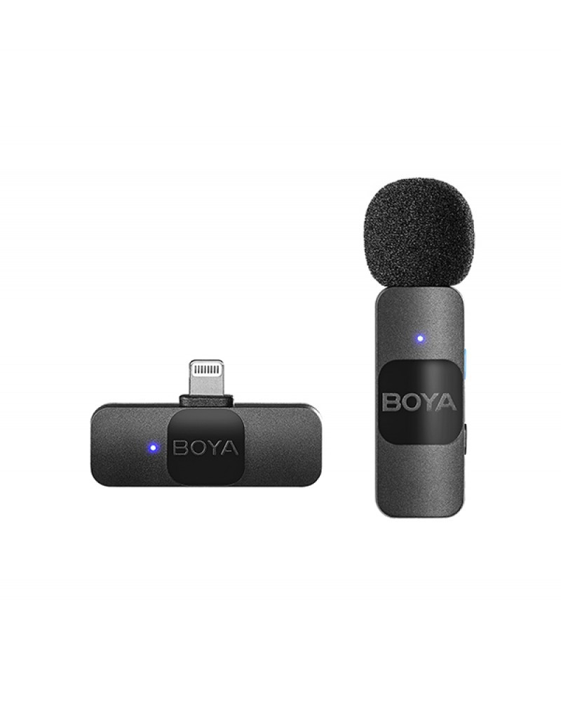 The BY-V series is a professional wireless microphone system for on-the-go recording, including vlogging, podcasting, as well as live streaming. The BY-V1 includes one transmitter & receiver, the receiver comes with a MFi-certified Lightning output, designed specifically for Apple iOS devices. It offers a high-quality audio solution at an affordable price, making it accessible to a wider range of users.
