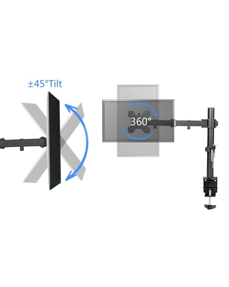 ● Multiple adjustments: arms extend and retract, tilt to change reading angles, and rotate from landscape-to-portrait mode