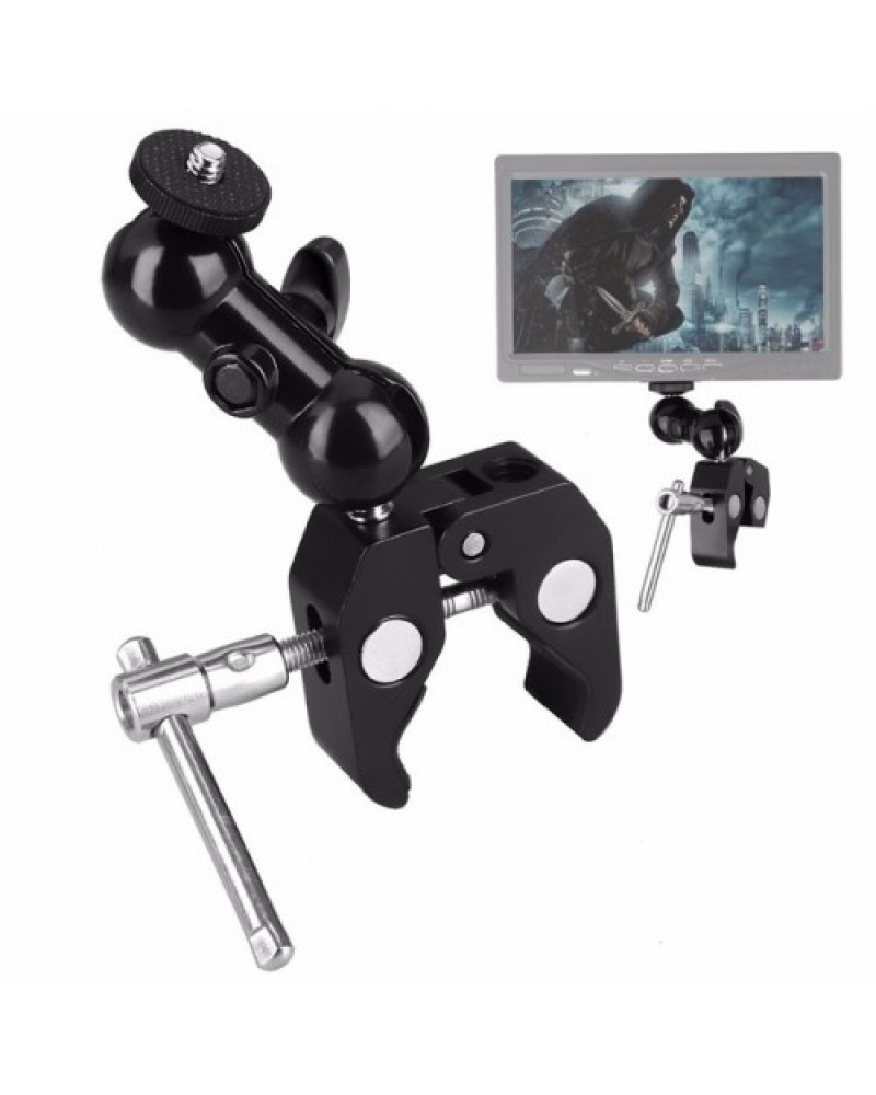 The Combination can hold up your Camera, Monitor or any device with 1/4" thread hole to shelves, plate glass, cross bars, steel or desktop.