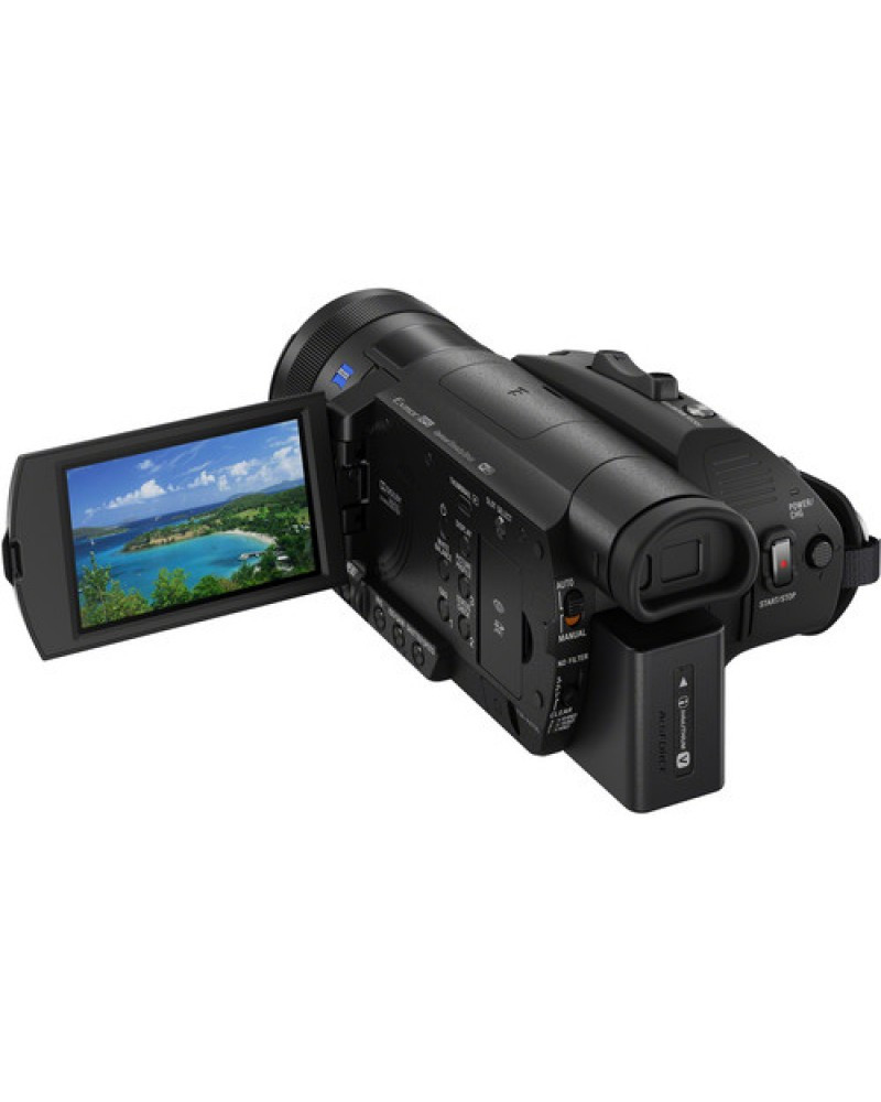 4K and HDR are now available in an easy-to-use camcorder format with the Sony FDR-AX700 4K Camcorder. Using the HLG format, HDR (High Dynamic Range) images can be recorded and processed for playback on HDR screens. Compared to SDR (Standard Dynamic Range) formats, HDR offers increased color and contrast representation that is immediately noticeable. Dual SD card slots, an LCD and viewfinder, manual controls, a 12x zoom range, and a comfortable form factor make the AX700 an all-around camera for anything from family events to professional filmmaking and videography.