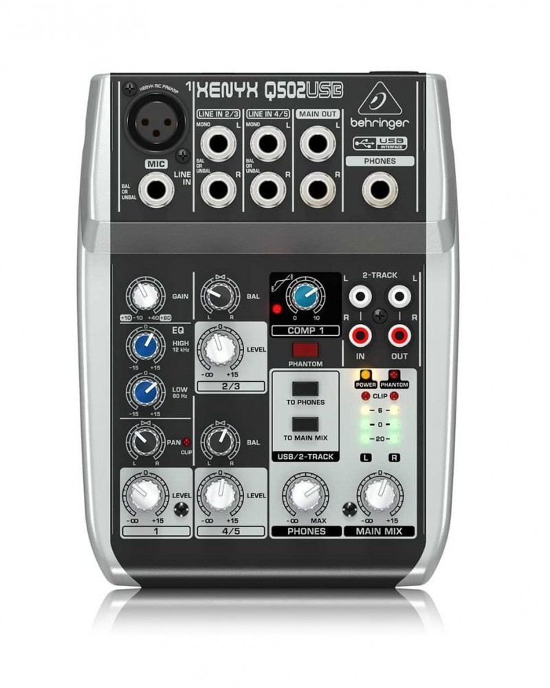 With millions of loyal and happy customers, BEHRINGER XENYX mixers stand alone at the top of their class. Armed with premium microphone preamps and robust feature sets typically reserved for more expensive consoles, next-generation XENYX Q Series USB mixers can handle your live gigs and provide the state-of-the-art tools to make stunning, professional-quality recordings. Got a solo gig at the local coffee shop, or just need to make a quick public announcement? Simple sound calls for the simply excellent XENYX Q502USB, the 5-input, 2-bus mixer with everything you need for incredible sound. Thanks to onboard phantom power, Q502USB's XENYX mic preamp can handle dynamic, as well as a studio-grade condenser mic. Elegant in its simplicity, the British-style, 2-band EQ provides warm and musical tone correction. The Q502USB also sports RCA CD/Tape I/O, handy for playing break music or for recording your set.