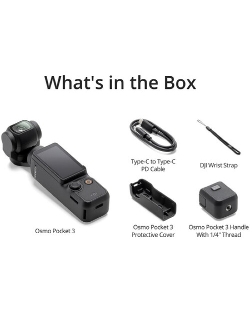 Capture steady and smooth motion videos with the DJI Osmo Pocket 3. Boasting a wide range of upgrades over its predecessor, the Osmo Pocket 3 features a 1" CMOS sensor that ensures high-quality, low-noise footage acquisition even in high-contrast environments and with resolutions up to UHD 4K120.Three built-in microphones capture stereophonic sound while reducing ambient noise, and new software enhancements bring ActiveTrack 6.0 to your fingertips for precise subject tracking in both photo and video modes with smart horizontal and vertical shooting modes, as well as D-Log M and 10-bit support.