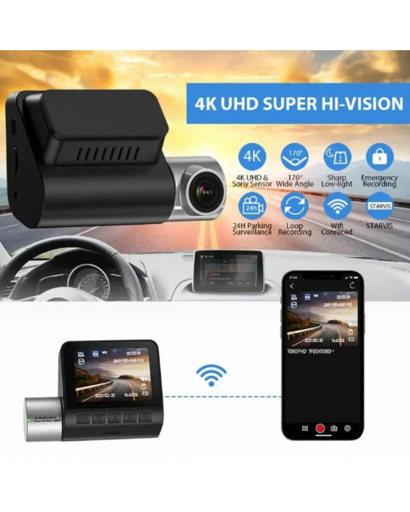V50 Car WiFi Dashcam 4K Dashboard Camera with 2.0 inch 240 * 320 IPS Screen 360 Rotatable Lens G-Sensor - Front+Rear Camera