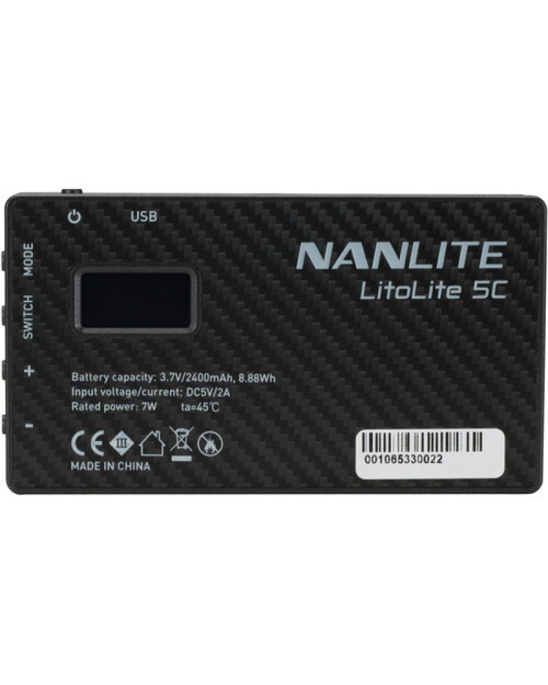 The Nanlite LitoLite 5C RGBWW Mini LED Panel is an amazingly bright, pocket-sized lighting fixture featuring an internal Li-Ion battery with USB-C Charging, adjustable color temperature from 7500-2700K with green to magenta shift, 360° of hue control with 100 levels of color saturation adjustment, as well as 15 pre-programmed adjustable special lighting effects.