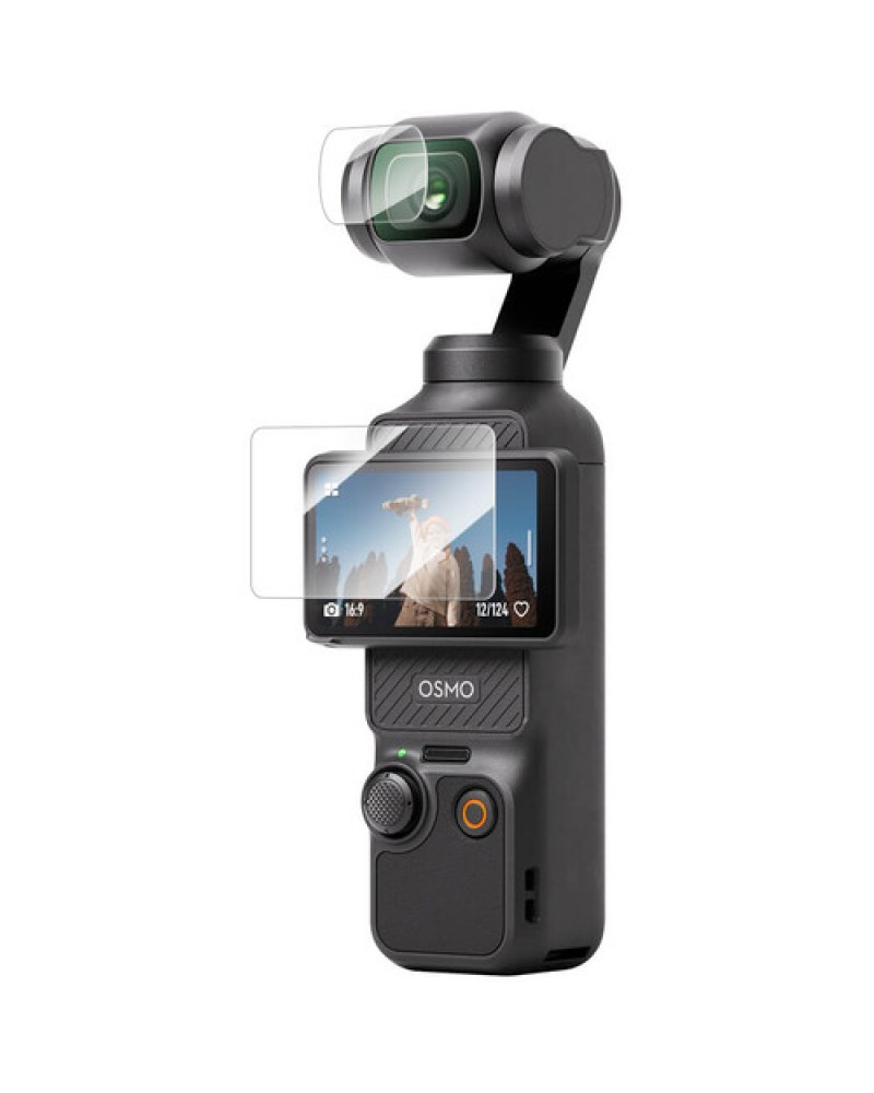 This Tempered Glass Film from TELESIN attaches to the lens and rear displays of your DJI Osmo Pocket 3 gimbal camera to prevent scratches, dust, and fingerprints from affecting your image quality. The tempered glass film has a high level of transmission for accurate picture monitoring. Thanks to a high degree of durability, the anti-shatter protectors prevent scratching of the surface of your touchscreen. Two sets of films and installation kits are included.