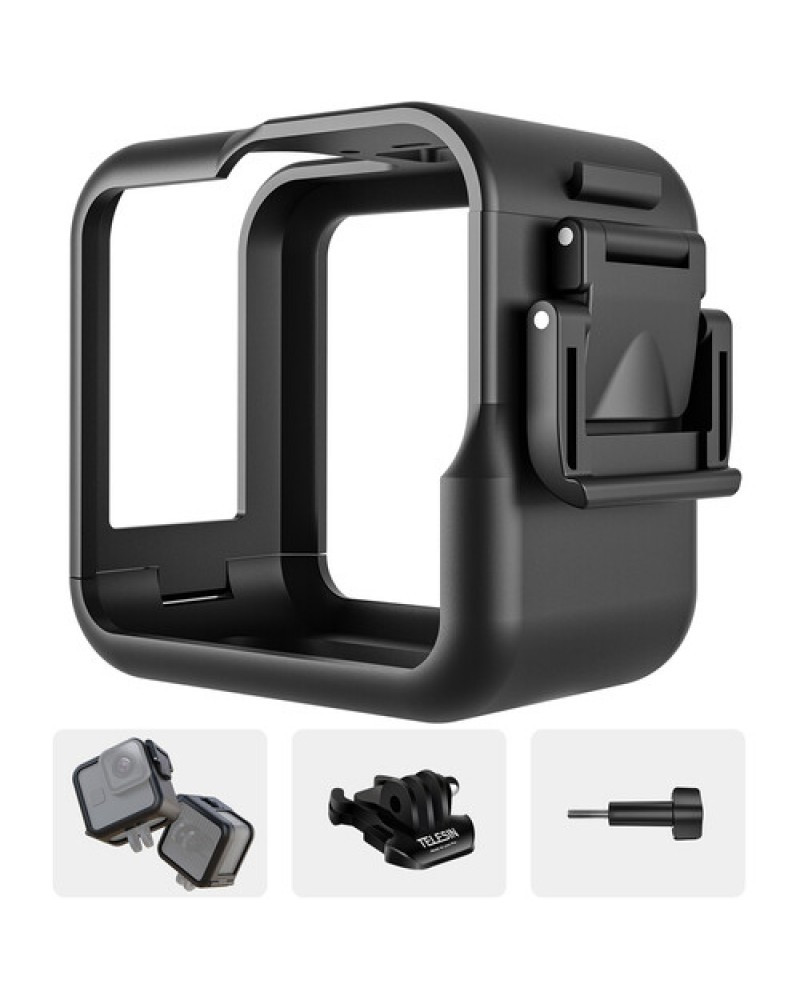 Protect your GoPro HERO11 Black Mini action camera while shooting with the lightweight Plastic Frame Case with 3-Prong Mount from TELESIN. This durable housing maintains access to the camera battery, ports, displays, and controls. Constructed from environmentally friendly resin, it features a detachable 3-prong mount and a heat-dissipating design.