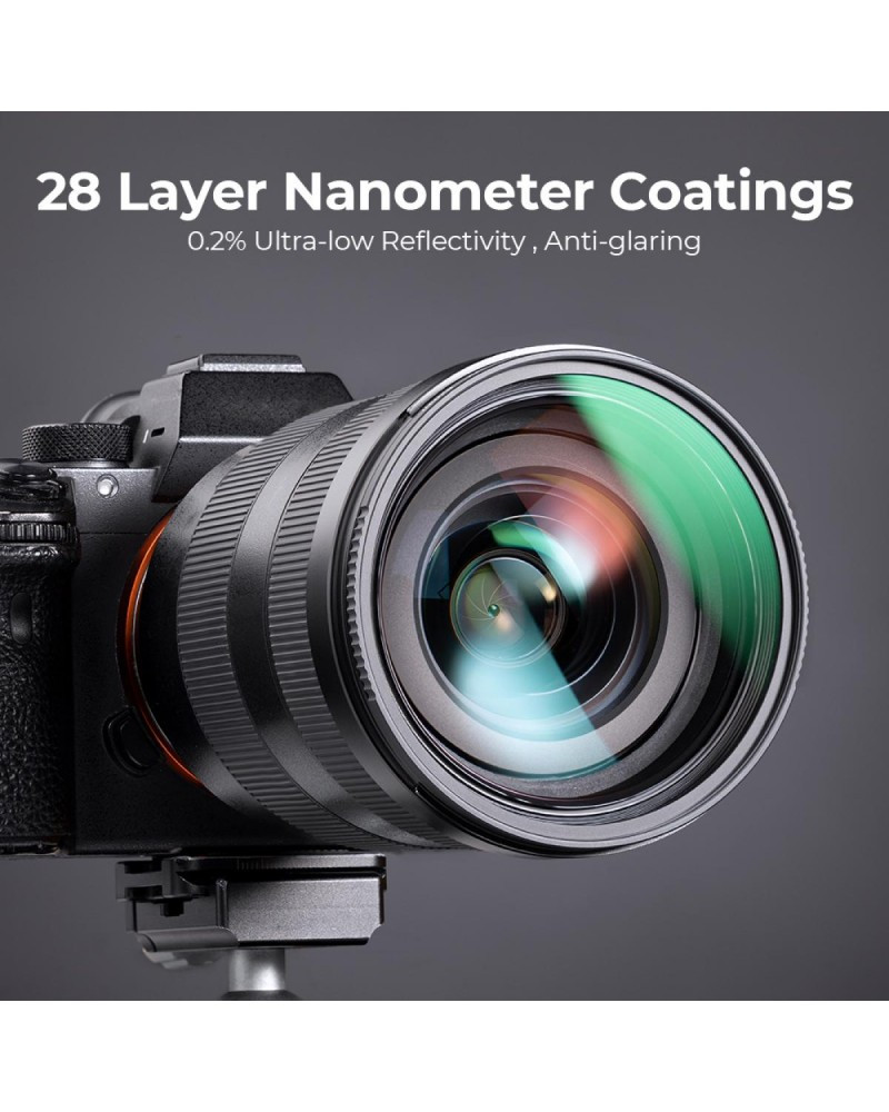 This UV filter with 28 multi-layer coatings, hydrophobic,scratch resistant . The 99.6% transmission, effectively reducing the reflection came from both the ground and filter itself, ensuring the true color of images.