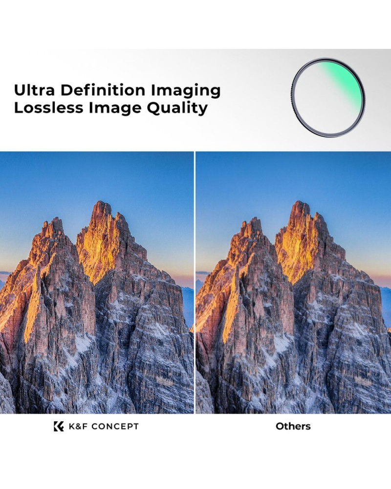 K&F Concept HD uv filter frame only 3.3mm with double side polishing technology no vignetting and the images still clarity even on telephotos lens.