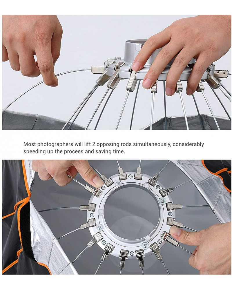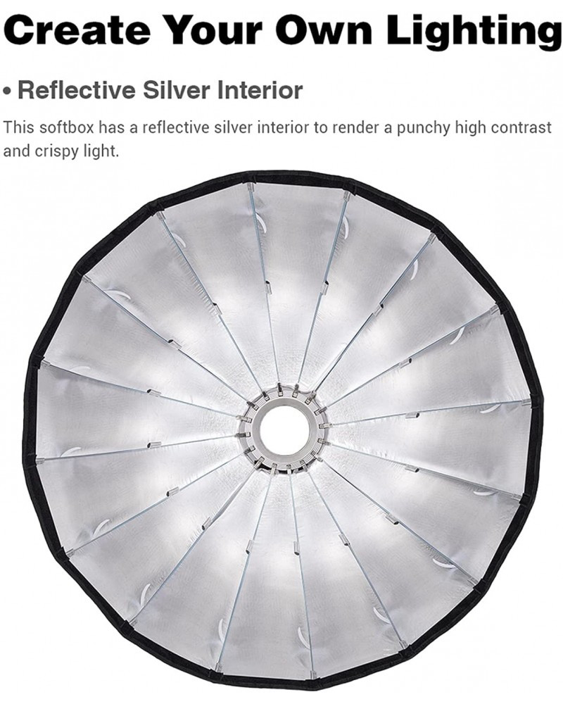 Reflective Silver Interior: This softbox has a reflective silver interior to render a punchy high contrast and crispy light