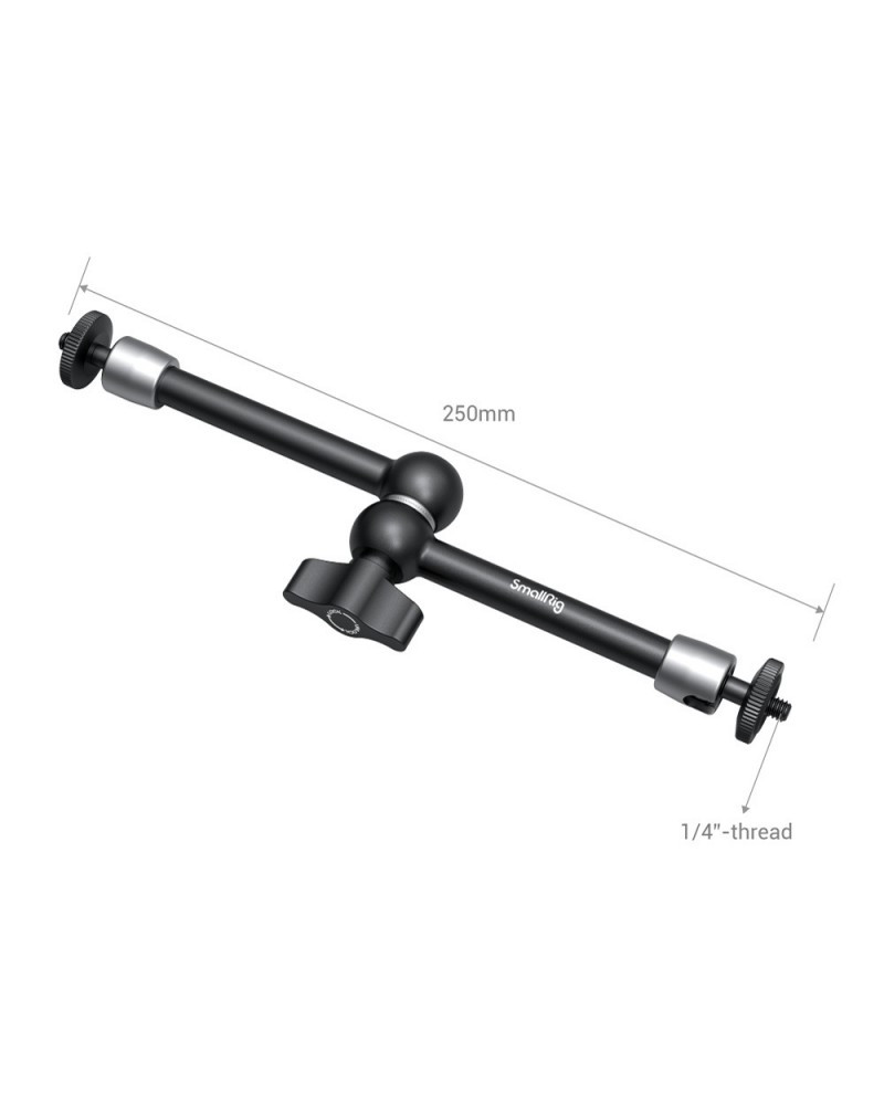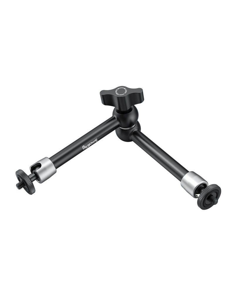 SmallRig Articulating Arm (9.8in) 2066B is equipped with 1/4"-20 screws on both ends respectively. Thus, it could attach monitor via the 1/4"-20 screw on the one end and attach accessories with 1/4"-20 threaded holes on the other end, like NATO Rail 1973. Mounted with 1/4"-20 screw is a rubber cushion that protects monitors from scratches and helps to lock the monitor tighter. It features an ergonomic wingnut for great convenience that could help to adjust any angles based on your needs.