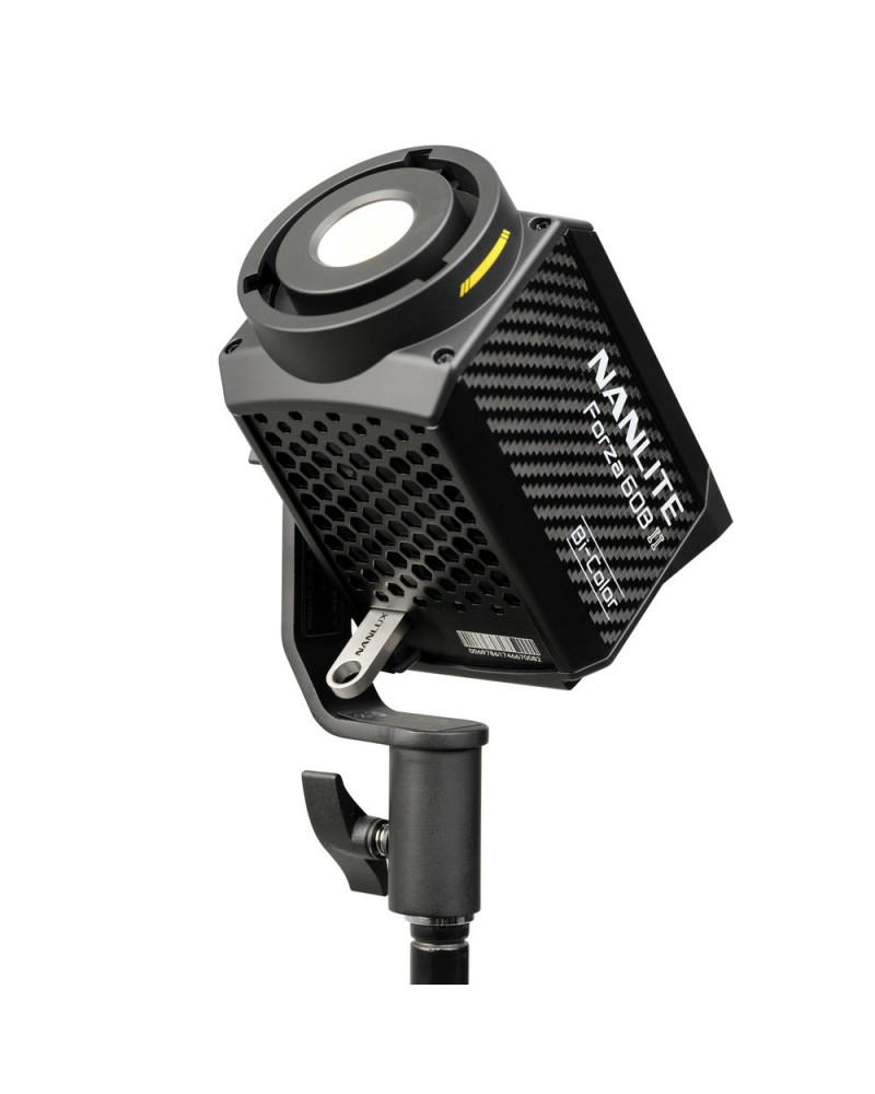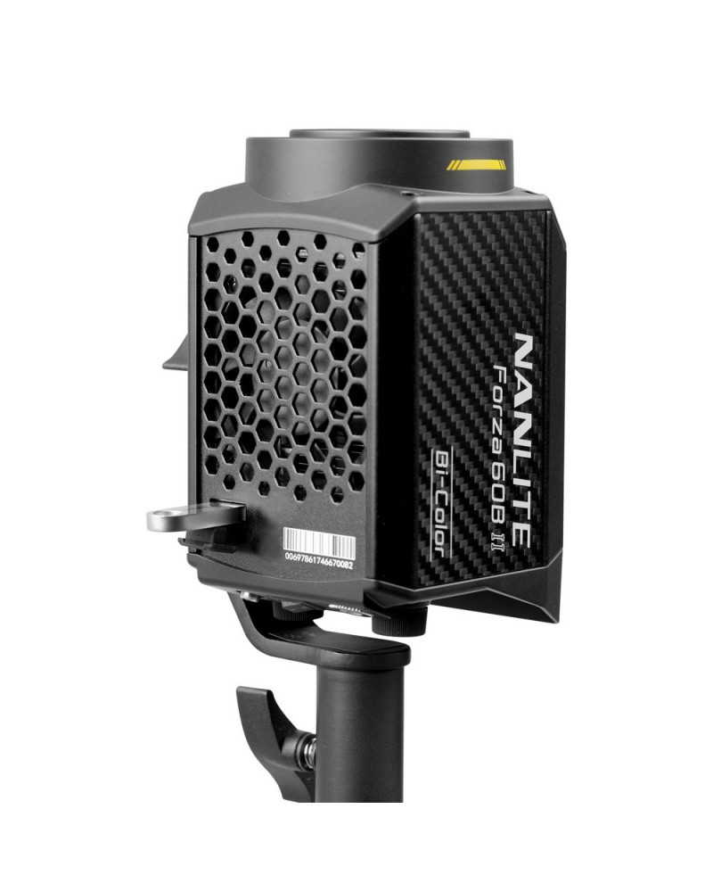 The Nanlite Forza 60B II Bi-Color LED Spotlight is small enough to fit in one hand, yet powerful enough to provide 14350 Lux, 1333 fc of 5600K light at 1 meter, and a versatile color temperature range of 2700K-6500K. It's ready for professional production with a durable build quality, control options for Bluetooth, 2.4G, and DMX/RDM, a glass-protected COB, a compact AC adapter, and the ability to run on a V-Mount battery or NP-F batteries with the included BH-FZ60 handgrip (a V-Mount handgrip is sold separately). The 60B II has a highly accurate CRI rating of 96 and a TLCI of 98.